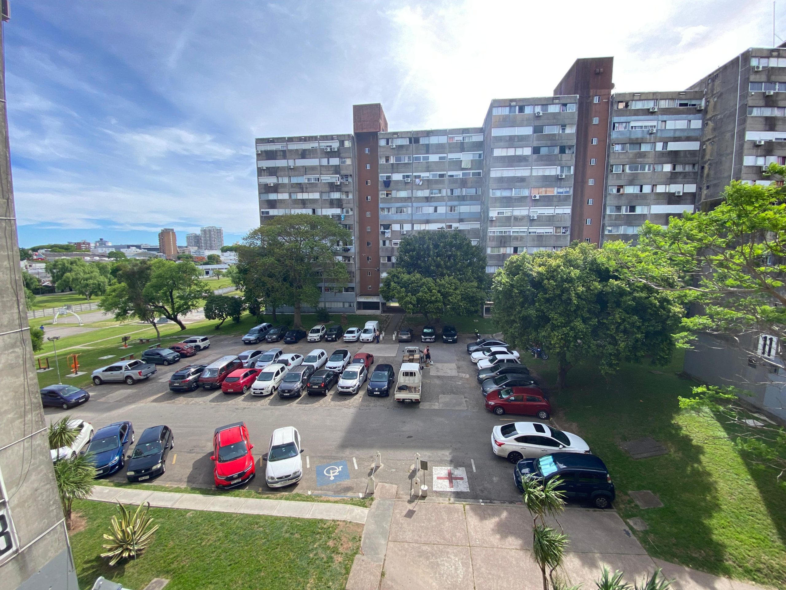 Un predio cerrado con vigilancia 24hs, amplios jardines, canchas deportivas y estacionamiento.